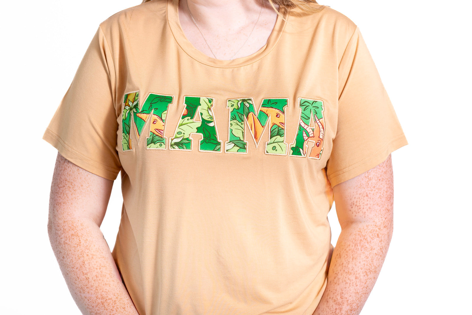 95% Bamboo Cuff Matched MAMA TShirt. Featuring our Dinos Print. Perfect to match your Joggers and your Little Peanuts in their "" Pajamas.